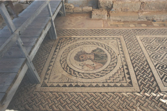 The mosaics in Paphos are beautiful. Only the floors are left of the old Roman villas, minutely covered in intricate coloured patterns - what would it have been like to walk on works of art? Now we're elevated from them, trampling over the wooden bridges like a flock of sheep. A guide ahead of us is addressing a group of German tourists. I try to make out something of her story about the mythological figures below, but her voice doesn't carry too well or I've forgotten more German than I thought. In the middle of one of the mosaics there's an obviously modern hatch breaking up the pattern, reminding me that people do have different ideas on how to treat ancient artefacts. |